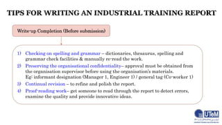 As students are still new in the pre-employment nature guide and. 2 Length of the report comply the universitys guidelines. The industrial training must be practiced at all institutions because it can provide invaluable knowledge to the students.